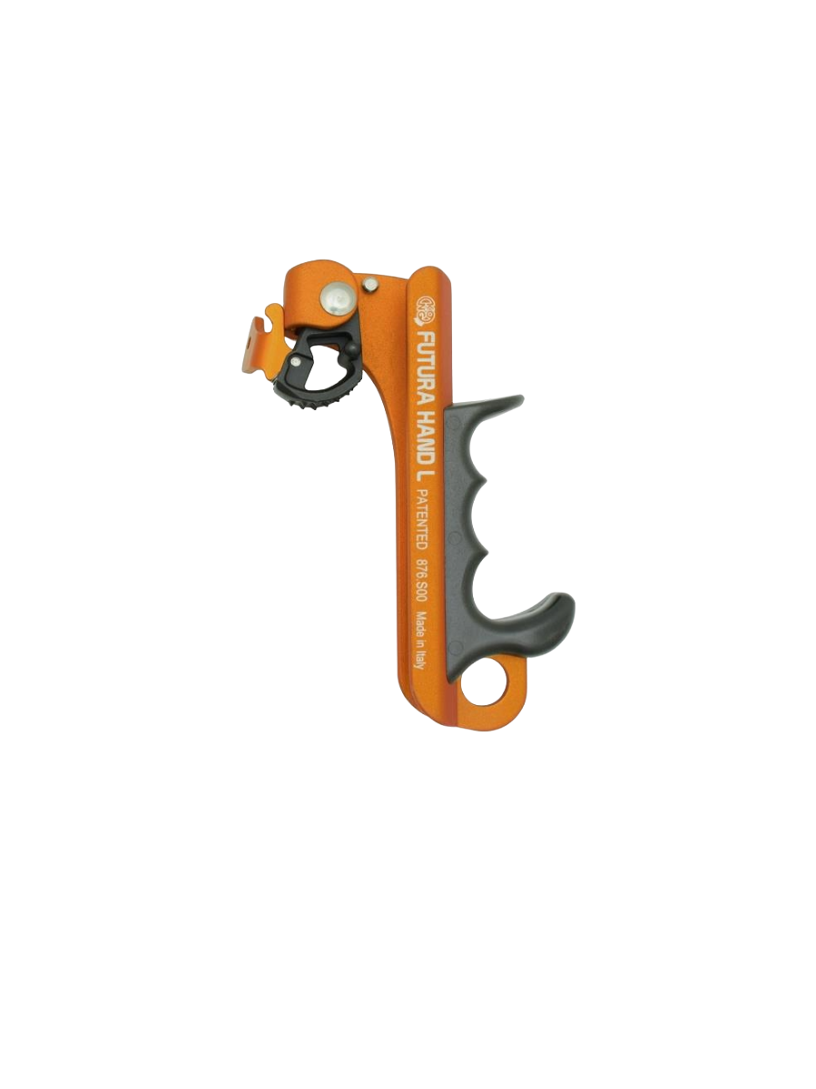 – Orificio superior para mosquetonear la cuerda. - Disponible en dos versiones, mano derecha y mano izquierda.