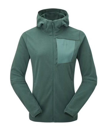 La capucha suave y ajustada y los puños elásticos facilitan el uso de capas cuando baja la temperatura, ya sea en una ruta alpina de alta montaña o refugiándose en un risco. El bolsillo reforzado en el pecho ofrece un práctico espacio de almacenamiento y le da a la sudadera un toque técnico.