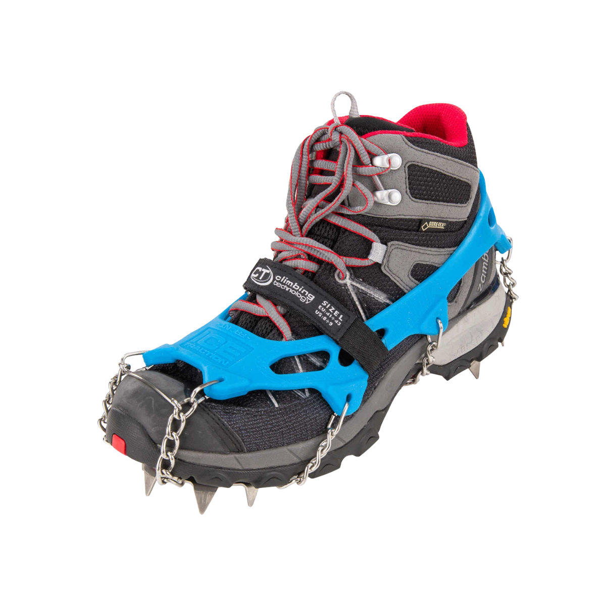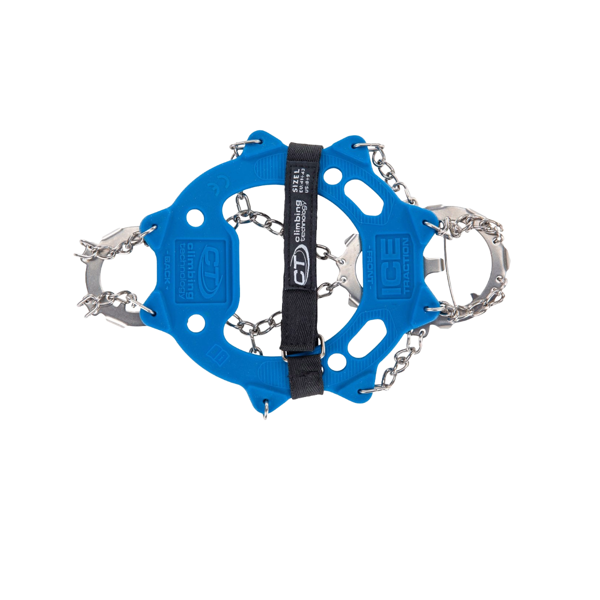 Crampones ligeros de la marca Climbing Technology diseñados para evitar situaciones deslizamiento en superficies deslizantes. Su diseñado permite adaptarse a cualquier tipo de calzado, por lo que resultan muy prácticos para las zapatillas en carreras por montaña. Enfocado para personas que busquen seguridad a la hora de andar sobre hielo y nieve. Cadenas de acero y materiales muy resistentes y duraderos para un buen agarre durante todo la temporada de invierno en superficies deslizantes. NO SON VALIDOS PARA ALPINISMO O ESCALADA EN HIELO, no es un sustitutivo de los crampones tradicionales.